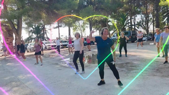 Dance to upbeat rhythms while enjoying fresh air and stunning views.